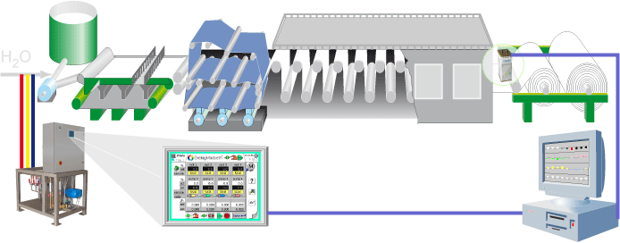 c) 造紙——造紙生產(chǎn)線上個流程的顏色測量和控制,能夠及時預(yù)警并調(diào)整顏色參數(shù),顏色數(shù)據(jù)連接配色生產(chǎn)系統(tǒng)還可以自動完成色品配料的自動調(diào)整。