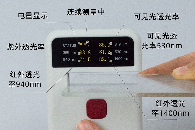 透過(guò)率儀CT系列,采用平行光路設(shè)計(jì),儀器會(huì)自動(dòng)校準(zhǔn),開(kāi)機(jī)即測(cè);將測(cè)試材料放入測(cè)試槽,屏幕立即顯示測(cè)試結(jié)果;按下HOLD鍵即可鎖定測(cè)試數(shù)據(jù);數(shù)字顯示,可測(cè)量紫外光、可見(jiàn)光、紅外光、940nm和1400nm的透光率。廣泛應(yīng)用于薄膜、玻璃等行業(yè)。