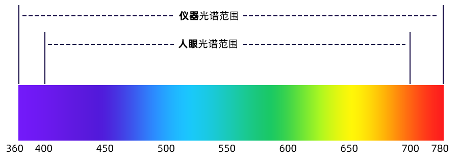 儀器測量波長范圍360-780nm,高于人眼光譜范圍,擴展了測量了范圍。