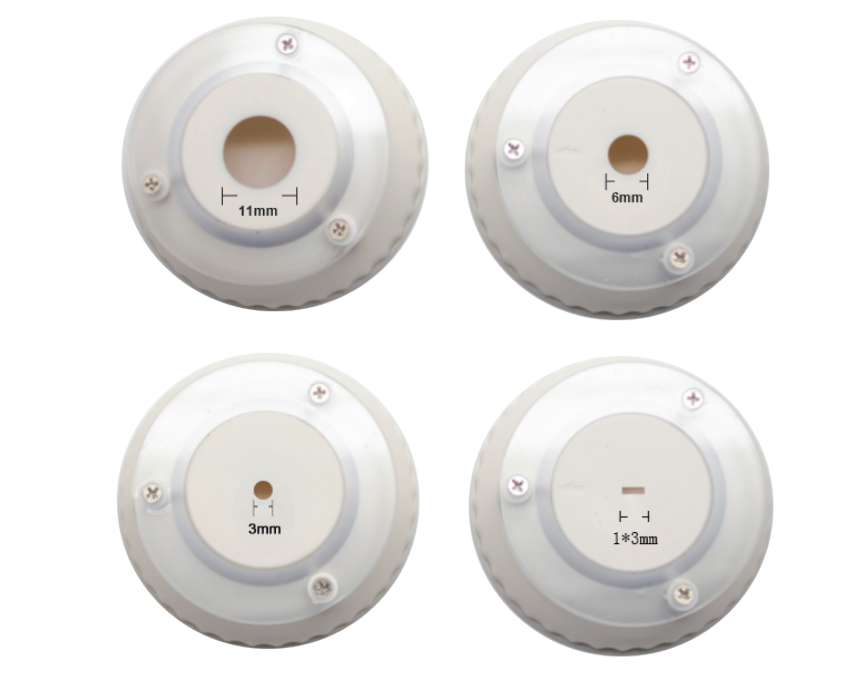 為了方便用戶對(duì)不同尺寸的樣品進(jìn)行測(cè)量,DS700D分光測(cè)色儀支持8種口徑供客戶使用,穩(wěn)定型:Φ11mm+Φ6mm+Φ3mm+Φ1*3mm,靈巧型:▽11mm+▽6mm+▽3mm+▽1*3mm,可以靈活的應(yīng)用于各種不同的使用和測(cè)試條件。
