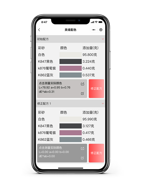 ● 對(duì)顏色不合格配方再次修正,使配色更加精準(zhǔn)。