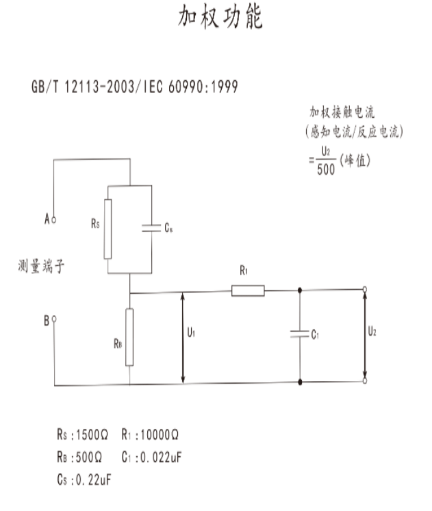 頻響范圍:DC~1MHz 測(cè)量阻抗電路(MD):符合GB9706.1-2020圖12 | ||||||