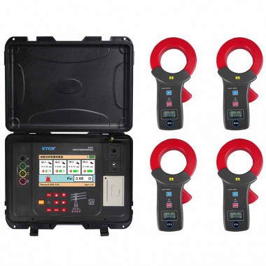 ETCR3250免解扣桿塔接地電阻測試儀又稱四鉗桿塔接地電阻測試儀、鐵塔接地電阻測試儀,用于測量桿塔接地電阻、土壤電阻率、接地電壓、接地線電流、交流電流。輸電線路桿塔通常有2個或4個引下線,采用地樁法或鉗表法測量接地電阻時需將引下線與接地極的連接解開,測量作業(yè)繁瑣工作量較大。本儀表采用4鉗法測量桿塔接地電阻值,測量時無需解扣,4個電流鉗與主機間采用無線通訊,現(xiàn)場測量快速安全,極大減輕了作業(yè)人員的工作強度提高了工作效率。