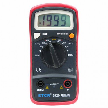 ETCR5920數(shù)字電壓表設(shè)有背光源,方便用戶在黑暗的場(chǎng)所讀出測(cè)量值。