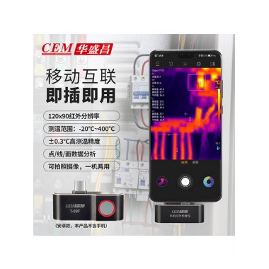 CEM華盛昌手機(jī)互聯(lián)型紅外熱成像儀T-09F是一款移動(dòng)端智能互聯(lián)型紅外熱熱成像儀,外置連接移動(dòng)端APP使用,可近距離對(duì)目標(biāo)對(duì)象進(jìn)行紅外熱成像溫度檢測(cè),可廣泛應(yīng)用于暖通設(shè)備、水管檢漏維修、電子電力、戶外探險(xiǎn)、現(xiàn)場(chǎng)救援、動(dòng)物觀察、故障排查、設(shè)備維檢、防窺偵測(cè)等應(yīng)用場(chǎng)景,隨身攜帶,使用方便。