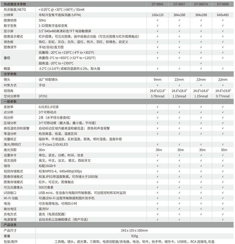 CEM DT-9897H系列高端工業(yè)智能型紅外熱像儀是CEM推出的160*120、384*288、640*480高端型紅外熱像儀系列產(chǎn)品。分辨率覆蓋范圍廣、高溫度量程可選、具有AUF融合功能、WIFI和激光測(cè)距功能,是電力巡檢與維護(hù)、石化冶煉、環(huán)保等領(lǐng)域所需的紅外熱像儀工具。
