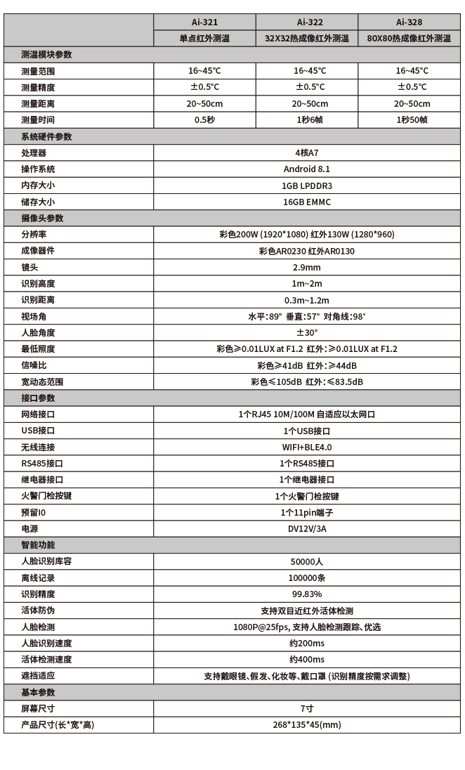 AI-321 人臉識別測溫一體機系列產(chǎn)品,將傳統(tǒng)的紅外測溫與AI人臉識別有效結(jié)合,用戶站在設(shè)備前1秒之內(nèi),即可確定用戶的身份和體溫數(shù)據(jù),一旦體溫超出正常值,設(shè)備會自動報警并禁止通行。