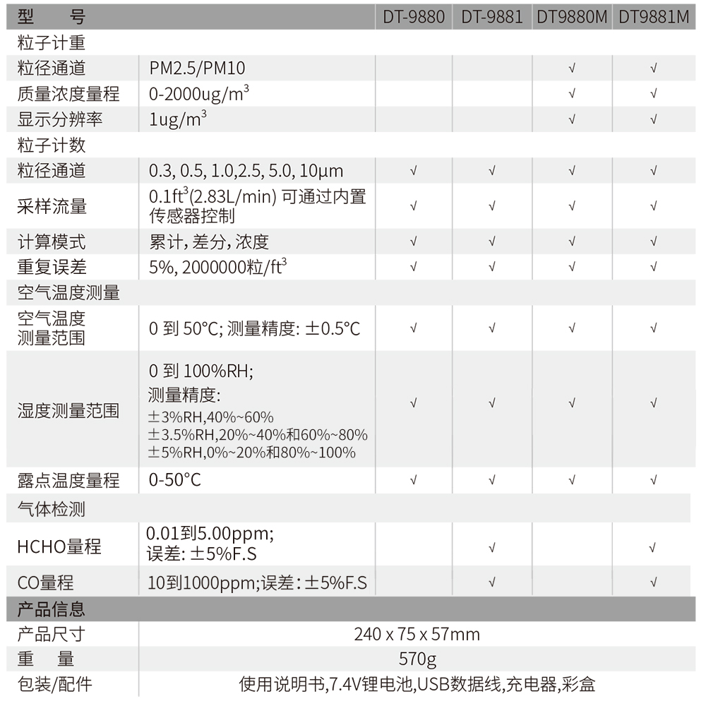 DT-9881在DT-9880基礎(chǔ)上新增有毒性氣體檢測(cè)功能(HCHO、CO)。