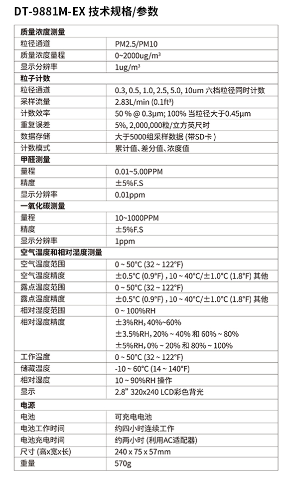 CEM DT-9881M-EX PM2.5粉塵顆粒物空氣質(zhì)量檢測儀