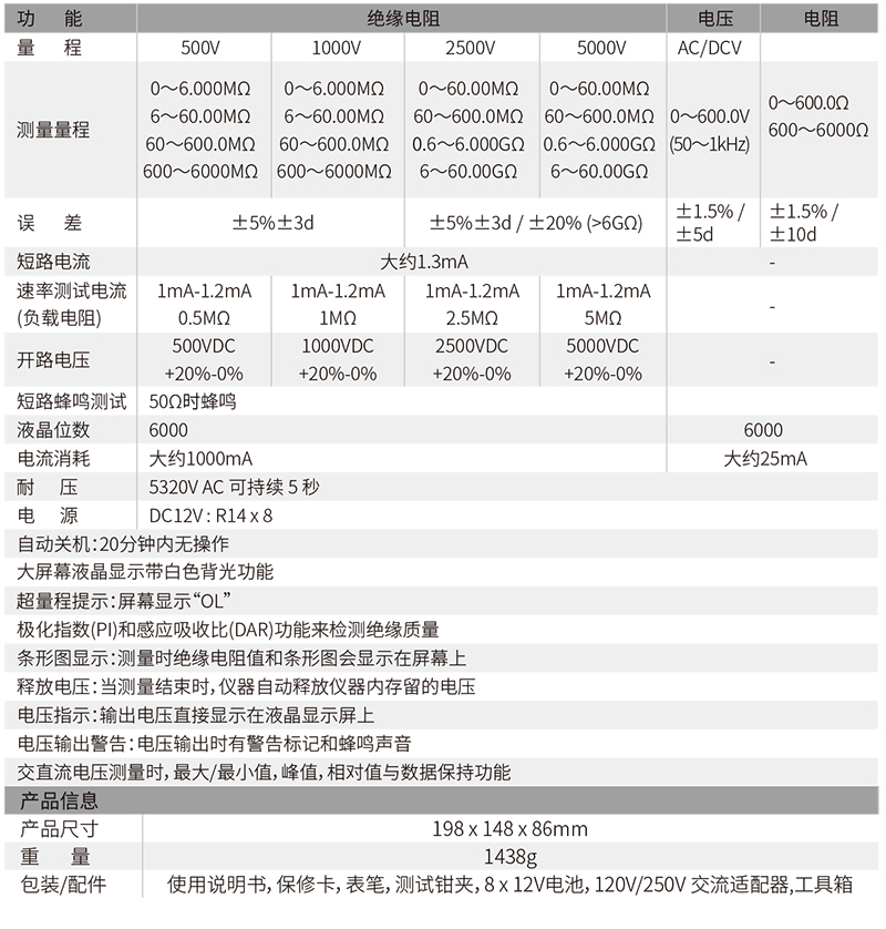 大量程測試:5000V、60GΩ的大量程測試滿足 電力測量需求