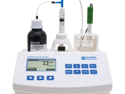 HI84500是為測(cè)量酒中游離、總二氧化硫而設(shè)計(jì)的方便、快捷的迷你自動(dòng)滴定儀,它預(yù)設(shè)分析方法和強(qiáng)大的算法來(lái)檢測(cè)滴定終點(diǎn)。采用活塞式加藥系統(tǒng),能夠保證滴定劑用量,并用HANNA標(biāo)準(zhǔn)對(duì)泵進(jìn)行校準(zhǔn),確保測(cè)量的準(zhǔn)確率。HI84500配備低量程測(cè)量,還可用做mV計(jì)直接測(cè)量ORP。