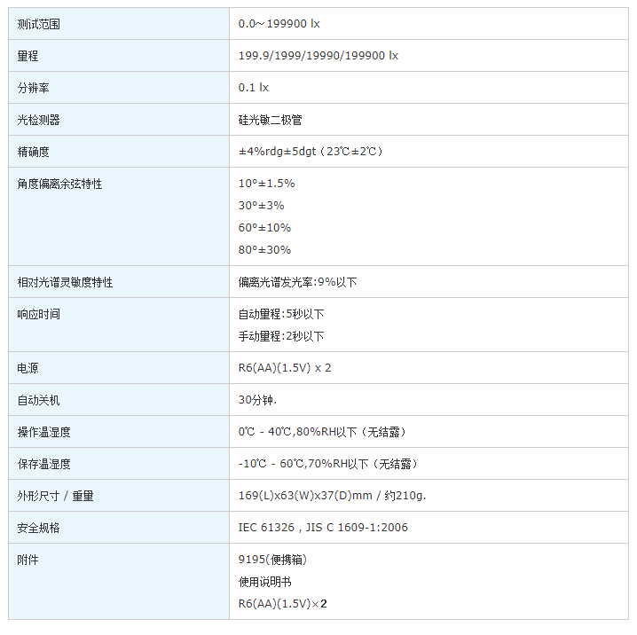 大量程照度測(cè)試 0.0 lx to 199900 lx