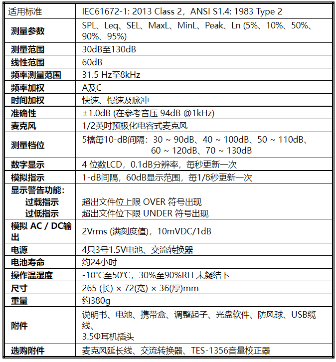 符合 IEC 61672-1等級(jí)2標(biāo)準(zhǔn)