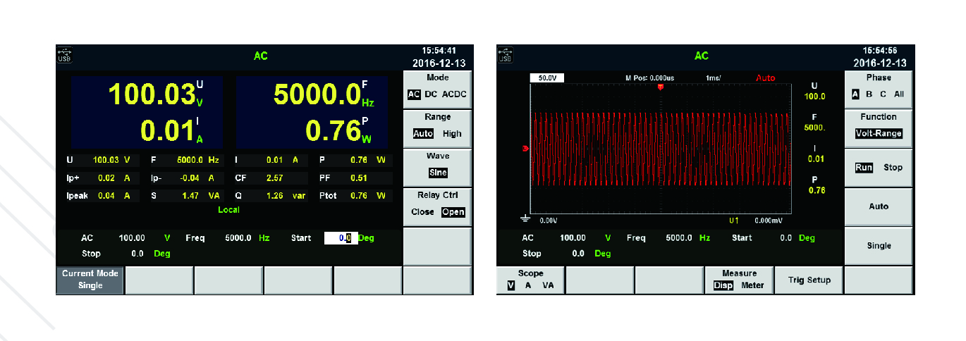 可顯示單機(jī)或者并機(jī)情況下電壓及電流的實(shí)時(shí)波型