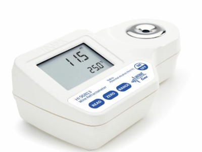 HI96813 將折光率轉(zhuǎn)化為以重量百分比為單位的蔗糖濃度,即%白利糖度(又稱(chēng)為°Brix)。該轉(zhuǎn)換的理論依據(jù)是國(guó)際食糖統(tǒng)一分析法委員會(huì)用書(shū)中提供的糖類(lèi)分析方法。由于葡萄汁中的糖類(lèi)多是果糖和葡萄糖并無(wú)蔗糖,因此這折光儀在測(cè)量葡萄酒時(shí)的糖度讀數(shù)又常常被稱(chēng)為“表觀白利糖度”。
