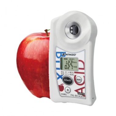 為了方便蘋果用戶快速檢測水果的糖酸比, ATAGO(愛拓)研發(fā)生產(chǎn)的蘋果糖酸度計——PAL-BX/ACID 5,同時檢測蘋果的糖度 & 酸度,一鍵(R)顯示糖酸比。