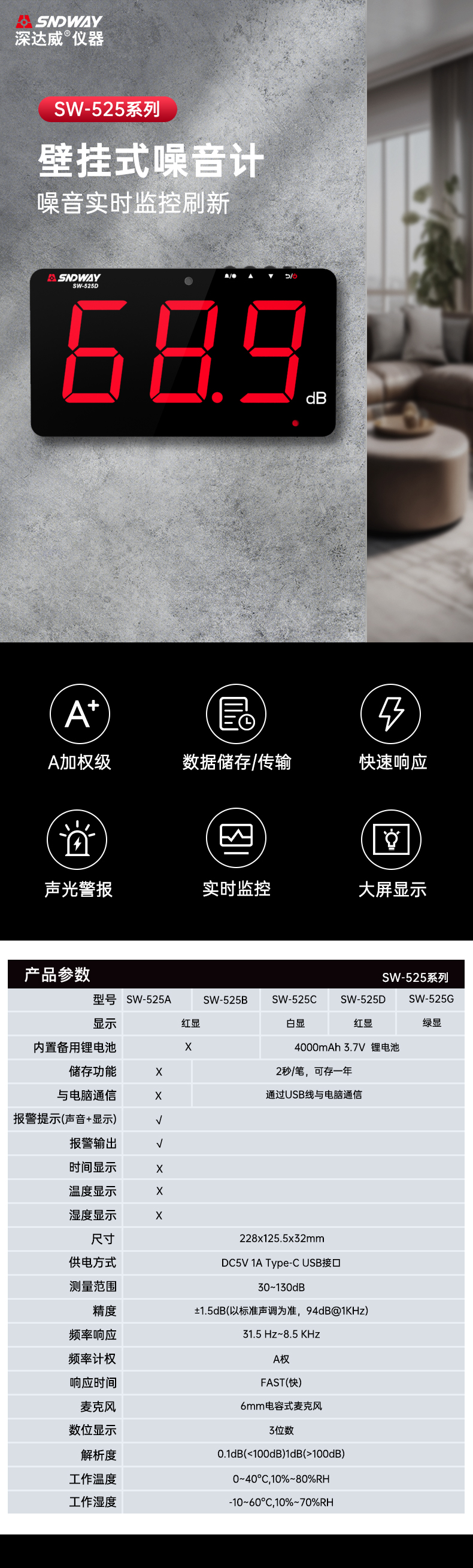 深達(dá)威 SW-525系列 壁掛式噪音計(jì)