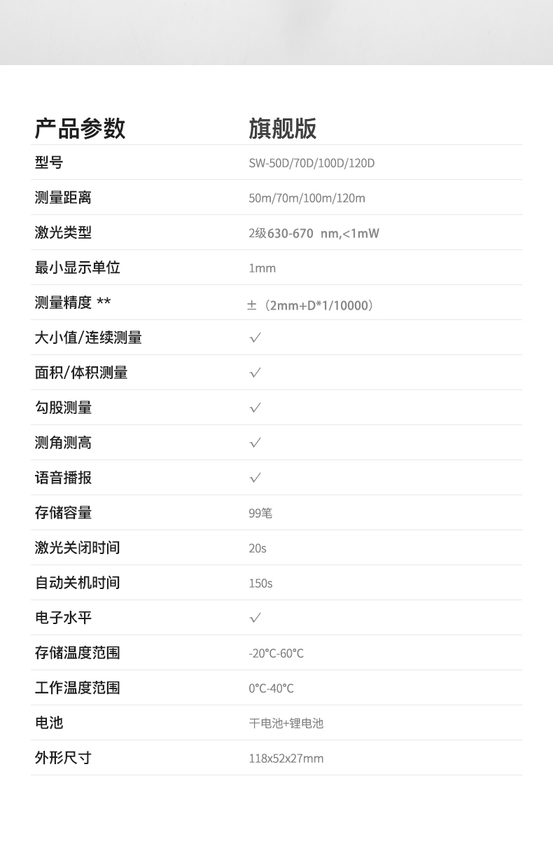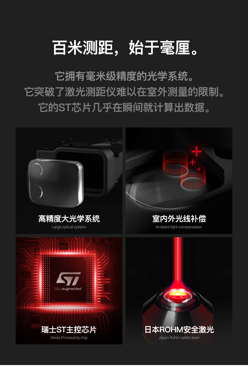 室內(nèi)外測(cè)距 綠光大光學(xué)系統(tǒng) 藍(lán)牙APP 雙發(fā)射激光 雙模式供電 長度 面積 體積 勾股測(cè)量