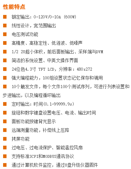 TH6300系列電源自帶一塊四位半的數(shù)字電壓表,根據(jù)型號不同電壓測試范圍有所差異,最大測試電壓達(dá)120V。