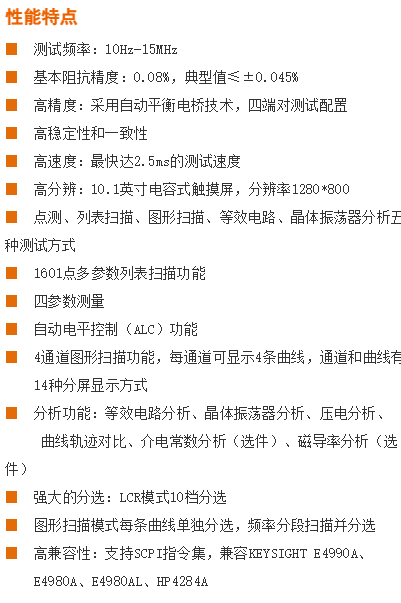可以最多設置1601點的列表掃描,每個點可以單獨設置測試頻率、測試電壓、直流偏置等測試條件。