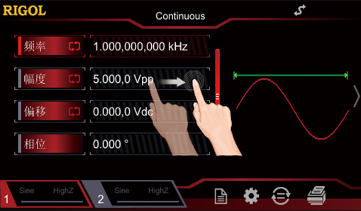 帶有點擊和滑動的觸摸屏控制與多功能旋鈕相結(jié)合,可以輕松查找和更新波形設置; 在通道之間切換,配置每個通道,輕松加載標準功能或任意波。