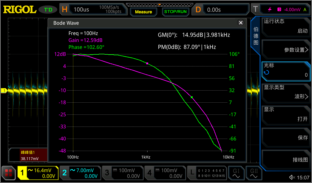 MSO5000伯德圖功能,可以直觀(guān)地提供測(cè)試曲線(xiàn)及數(shù)據(jù),幫助工程師通過(guò)分析相位裕度和增益裕度等參數(shù),快捷判斷系統(tǒng)穩(wěn)定性。