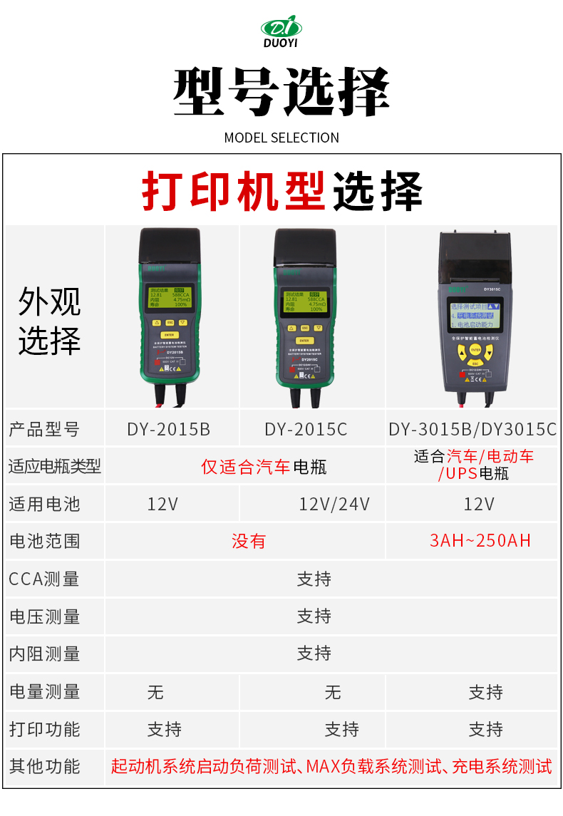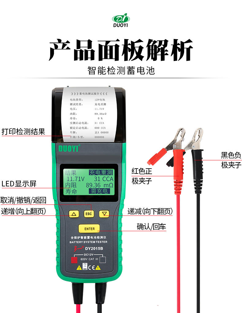 多一DUOYI DY2015B 全保護(hù)智能蓄電池檢測(cè)儀(帶打印)