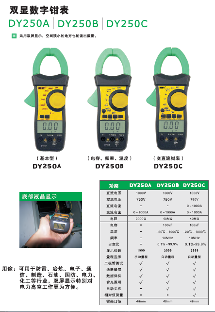 多一DUOYI DY250C 數(shù)字鉗形萬用表雙屏數(shù)顯鉗形表鉗表交直流電流測量表