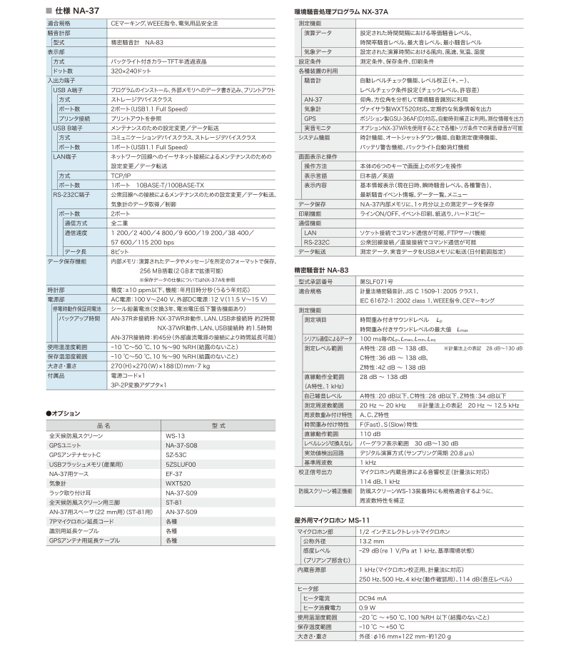 日本理音RION 噪音計 環(huán)境騒音観測裝置NA-37A