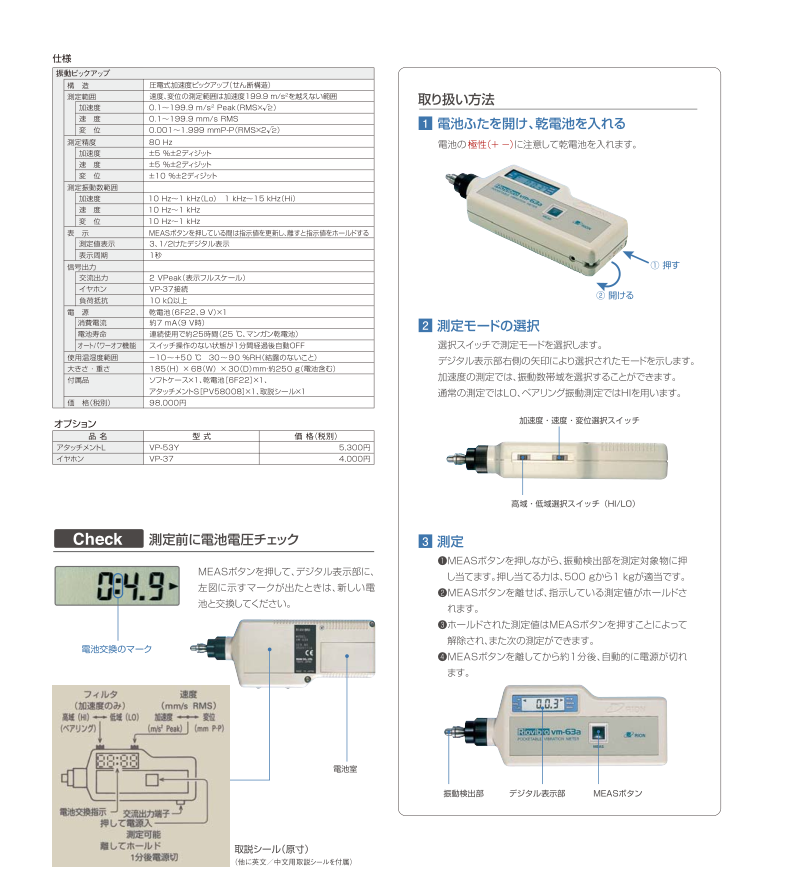 日本理音 RION 數(shù)字測振儀 VM-63A/VM63A/VM63/VM-63