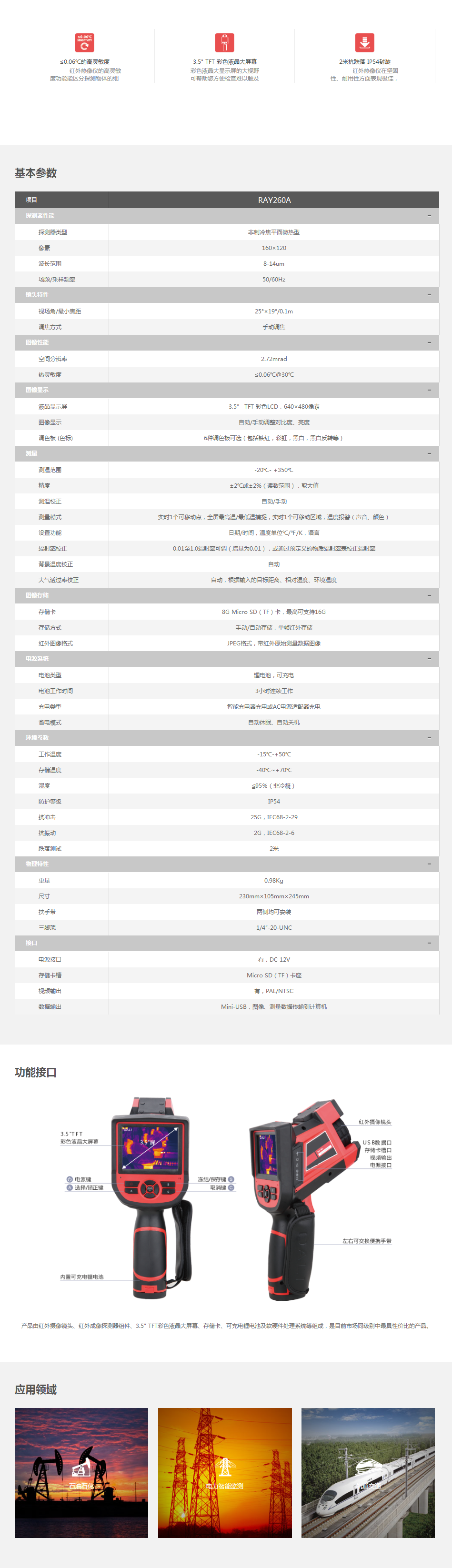 雷泰克raytronix RAY260A 紅外熱成像儀 -20℃- +350℃