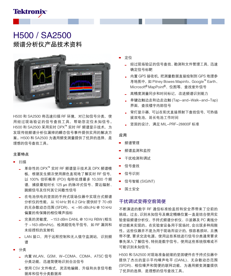 泰克Tektronix 手持式頻譜分析儀 H500