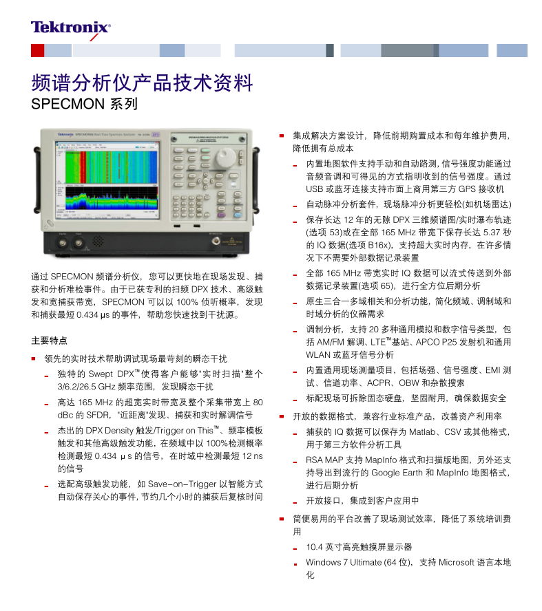 泰克Tektronix 頻譜分析儀 SPECMON3B