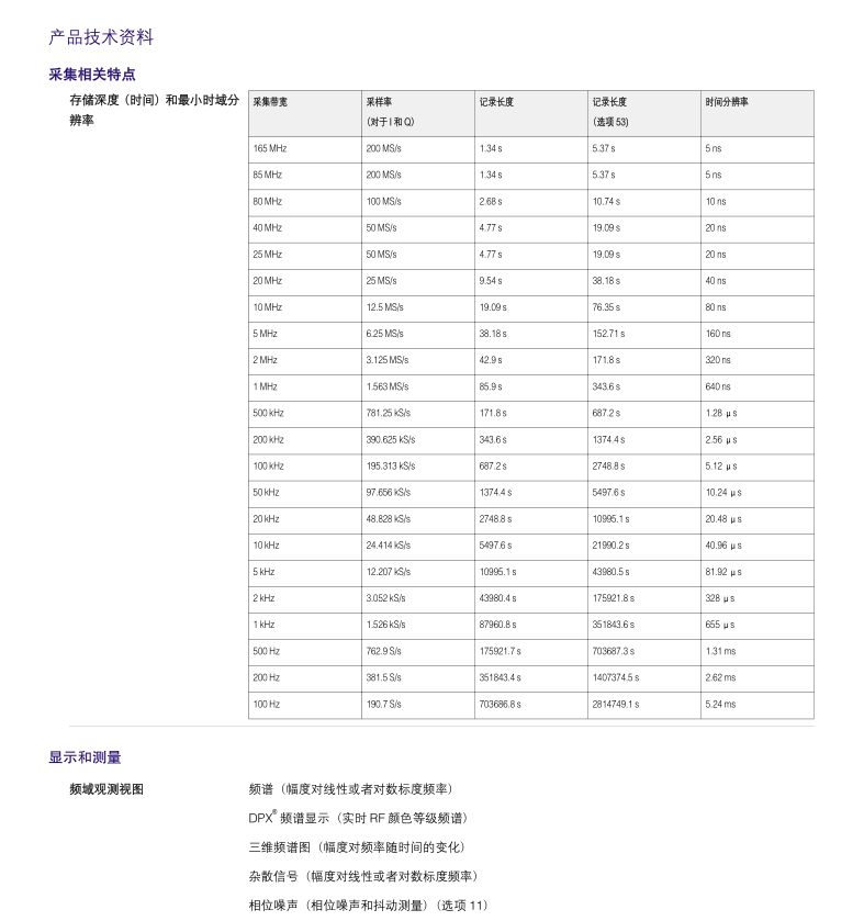 25 MHz、40 MHz、80 MHz、125 MHz 和 165 MHz