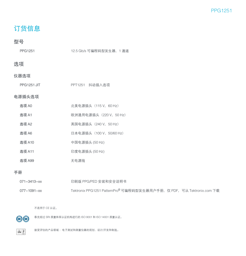 泰克Tektronix 碼型發(fā)生器 PPG3202