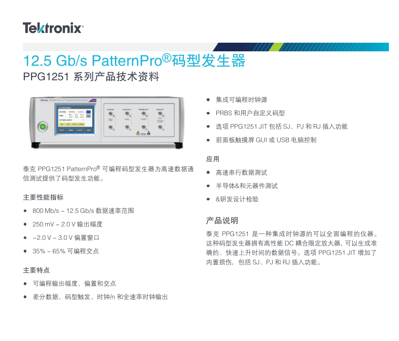 泰克Tektronix 碼型發(fā)生器 PPG1604