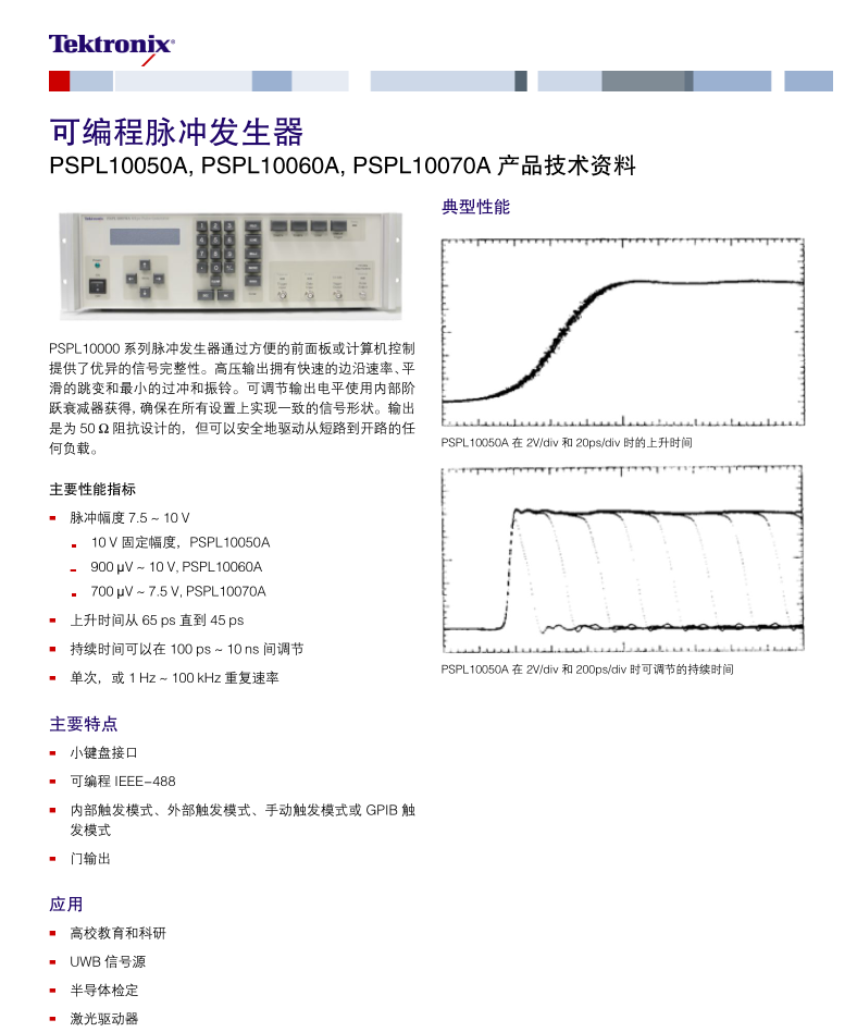 泰克Tektronix 脈沖信號(hào)發(fā)生器 PSPL10070A