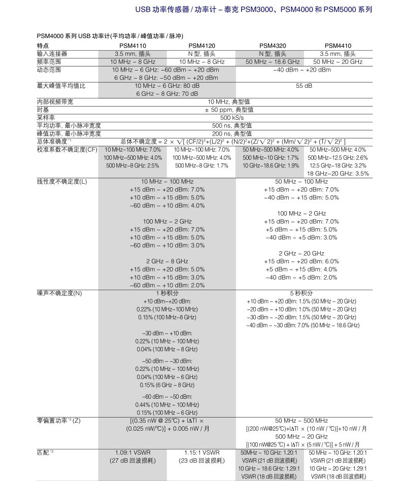 泰克Tektronix 微波功率傳感器/功率計 PSM4410