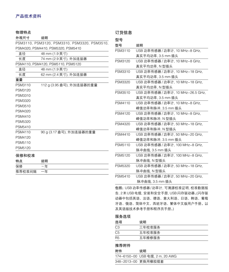 泰克Tektronix 微波功率傳感器/功率計 PSM5120