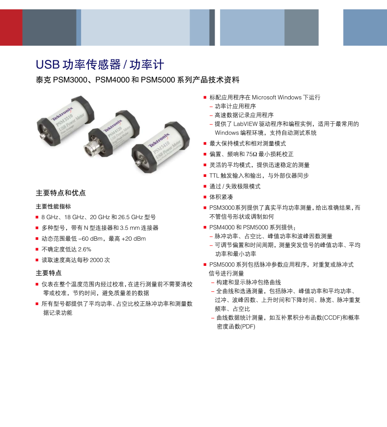 泰克Tektronix 微波功率傳感器/功率計(jì) PSM4110