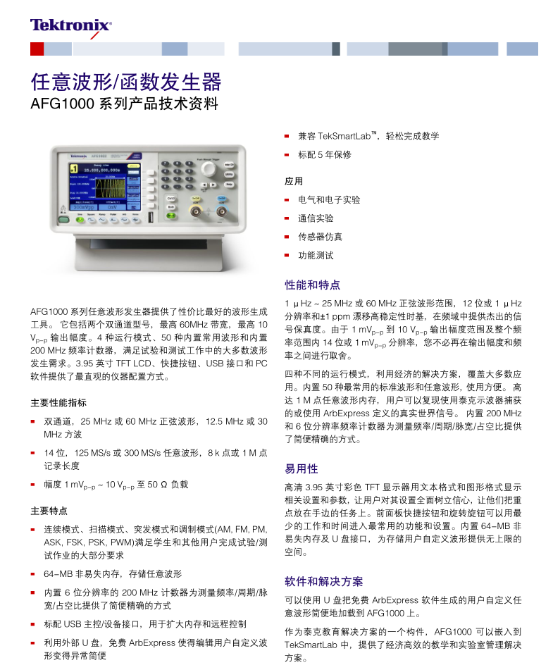 泰克Tektronix 任意波形函數(shù)發(fā)生器 AFG1062