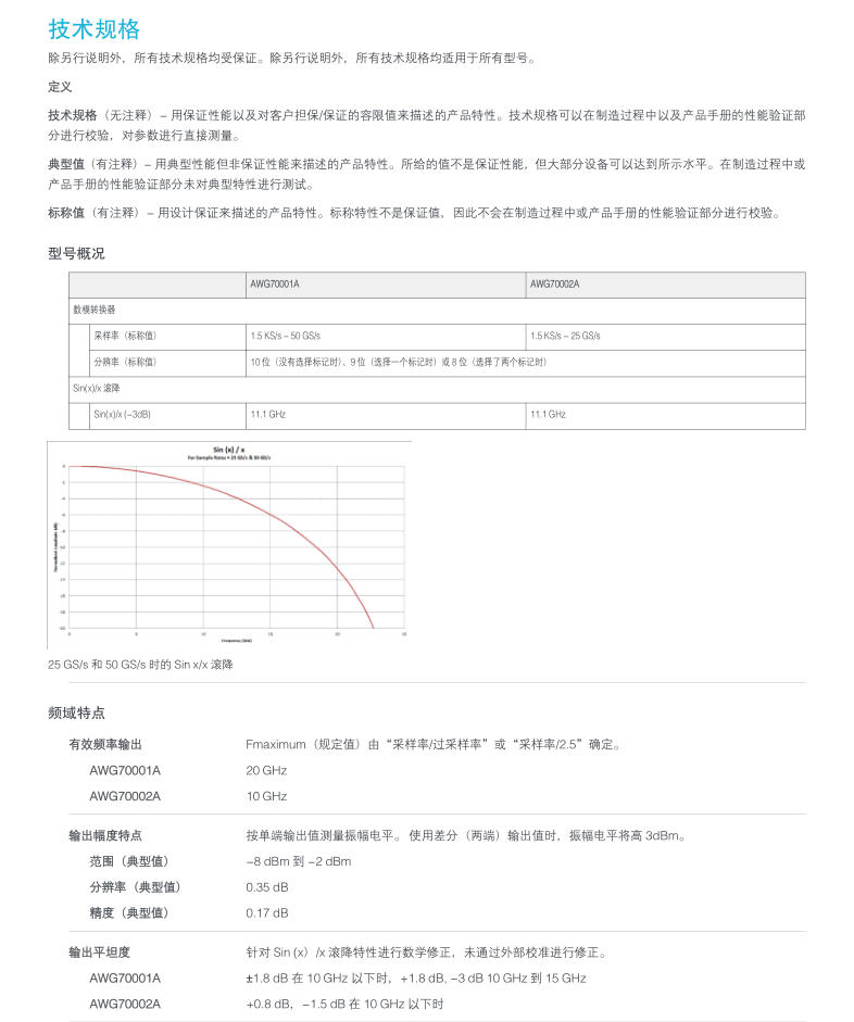 高 14 GHz 20 GHz 2 GS - 16 GS(可選) 50GS/s 8、9 或 10 位