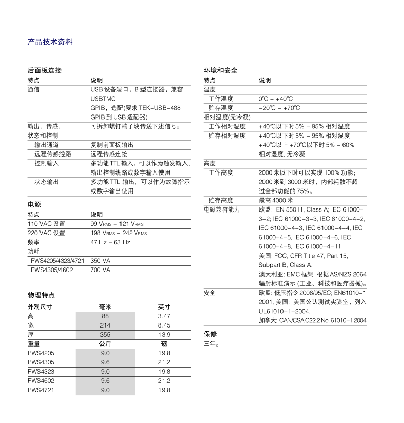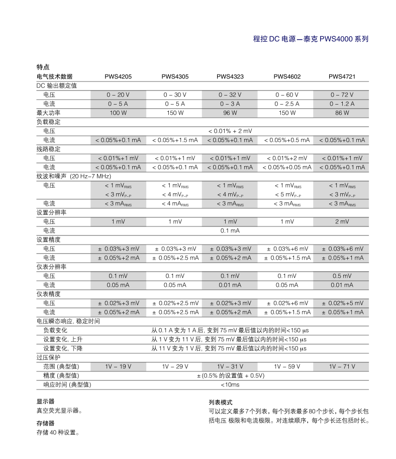泰克Tektronix PWS4000系列可編程程控直流電源 PWS4721
