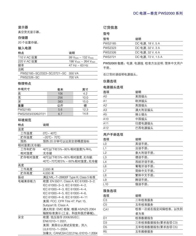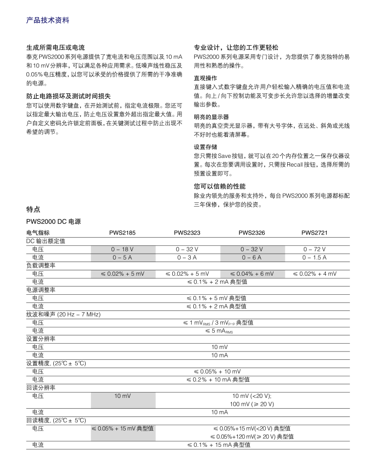 泰克Tektronix PWS2000系列 DC電源直流電源 PWS2721