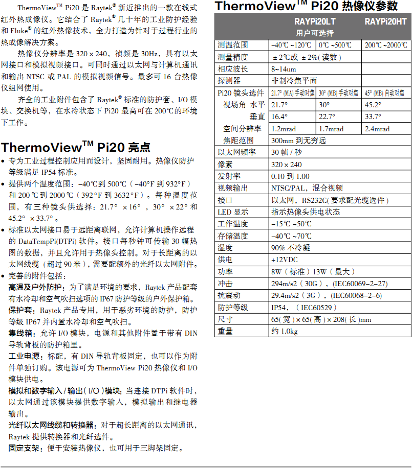美國雷泰 在線熱像儀 ThermoView Pi20