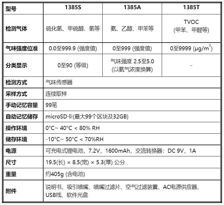 1385S:煮飯油煙、香煙、藥品及食物氣味檢測