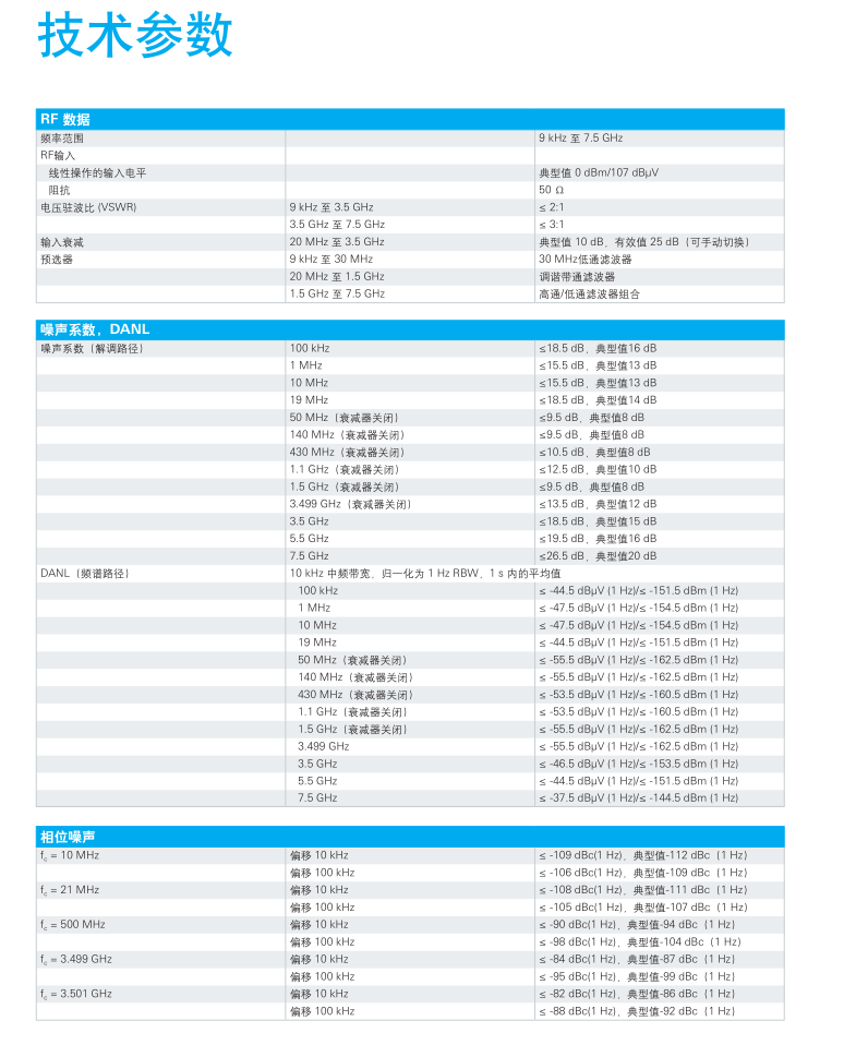 ? 可在 9 kHz 至 7.5 GHz 的整個頻率范圍,進行快速全范圍掃描,掃描速率高達 1.8 GHz/s? 150 Hz 到 500 kHz 帶寬解調和 10MHz 中頻頻譜