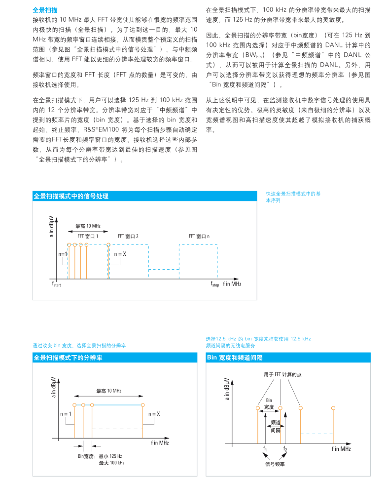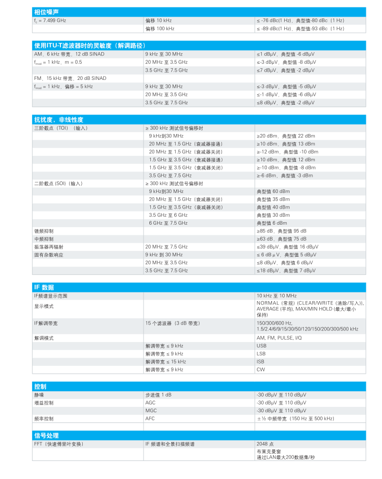 ? 可在 9 kHz 至 7.5 GHz 的整個頻率范圍,進行快速全范圍掃描,掃描速率高達 1.8 GHz/s? 150 Hz 到 500 kHz 帶寬解調(diào)和 10MHz 中頻頻譜