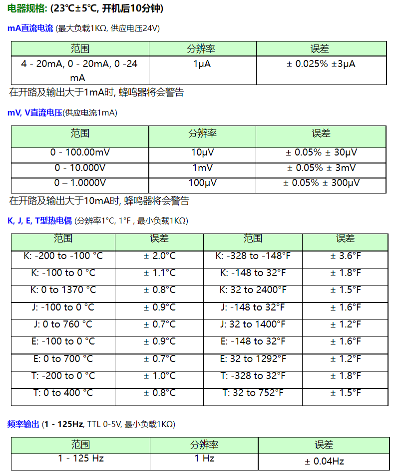 K型,J型,E型,T型 熱電偶 1℃ 1 ℉ 分辨率