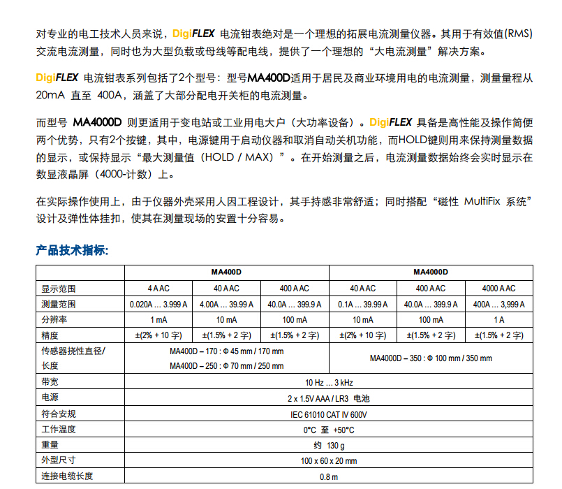 法國CA DigiFlex 柔性電流鉗表 MA4000D